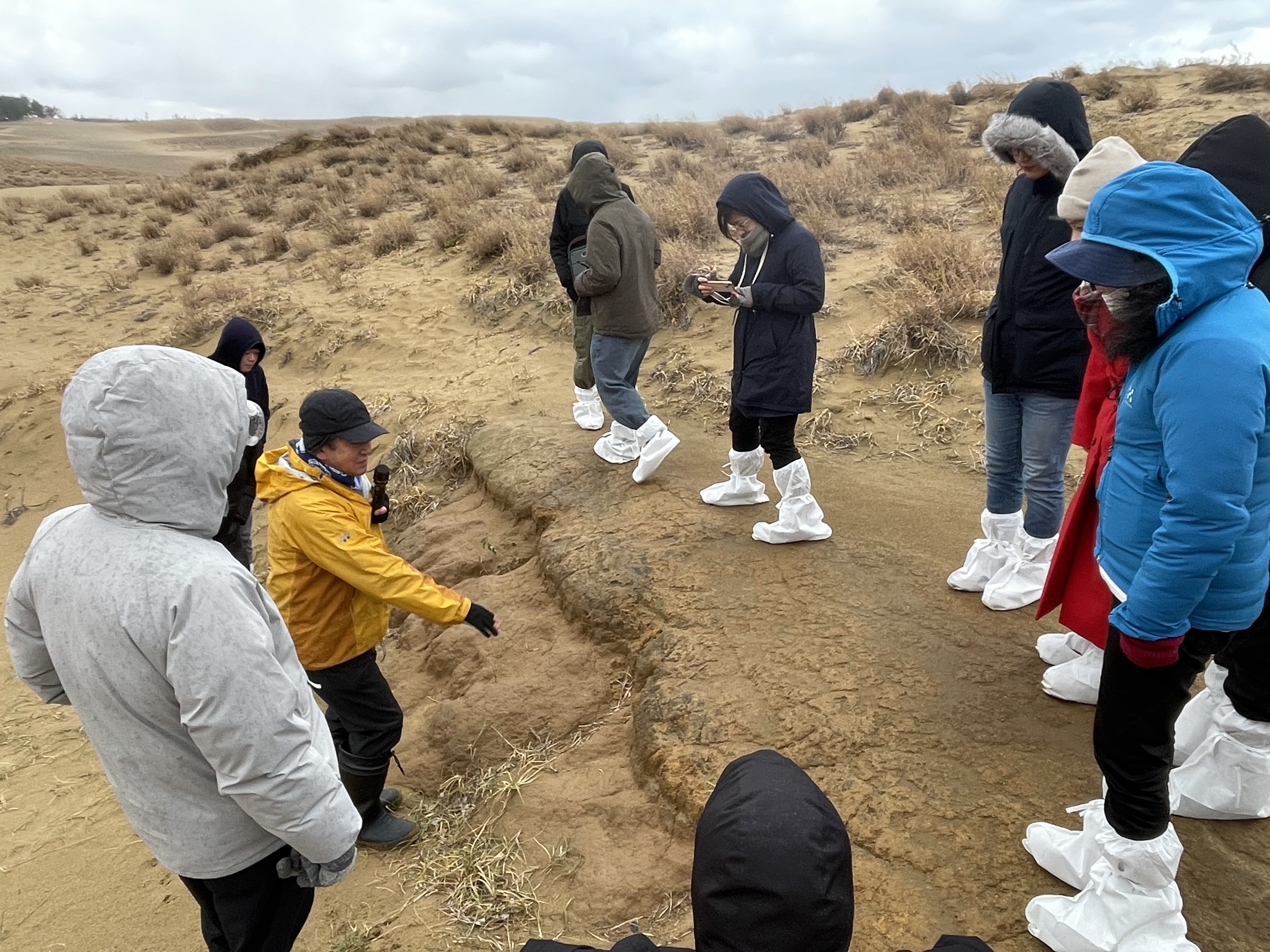 1日目は、7名の学生による研究発表と意見交換会、2日目は、芳野極教授(岡山大学惑星物質研究所)、⻑岡央准教授(⽴命館⼤学宇宙地球探査研究センター)による「⾼圧実験とサンプル分析から探る⽉の内部構造」をテーマとした講演、大竹真紀子教授(岡山大学惑星物質研究所)によるSLIMミッションで得られた科学成果の紹介、そして、今秋に当研究所に導入された火星環境を再現する“惑星表層環境模擬チャンバー”をはじめとする当研究所の最先端の研究設備の見学を実施しました。3日目は、宮崎理沙主任研究員(宇宙航空研究開発機構)による月内部進化に関する総合討論・JAXAのJLPEDAグループの活動紹介、その後、鳥取砂丘へ場所を移し、小玉芳敬教授(鳥取大学)による砂丘ガイドツアー、鳥取砂丘月面実証フィールド「ルナテラス」の見学と、充実の3日間となりました。